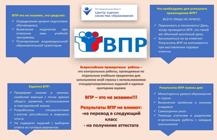 Всероссийские проверочные работы (ВПР) – это комплексный проект в области оценки качества образования, направленный на развитие единого образовательного пространства в Российской Федерации, мониторинг введения федеральных государственных образовательных стандартов (ФГОС), формирование единых ориентиров в оценке результатов обучения, единых стандартизированных подходов к оцениванию образовательных достижений обучающихся.